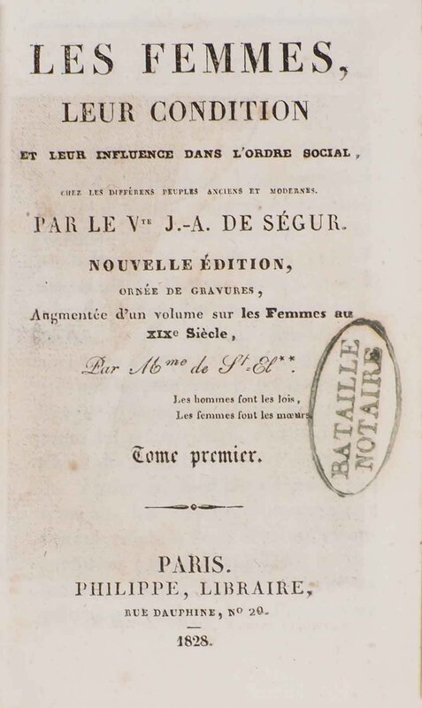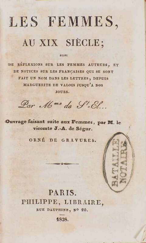 Les femmes, leur condition et leur influence dans l'ordre social, chez les différens peuples anciens et modernes.... Nouvelle édition, ornée de gravures, augmentée d'un volume sur les femmes au XIXe siècle, par Mme de St. El**.