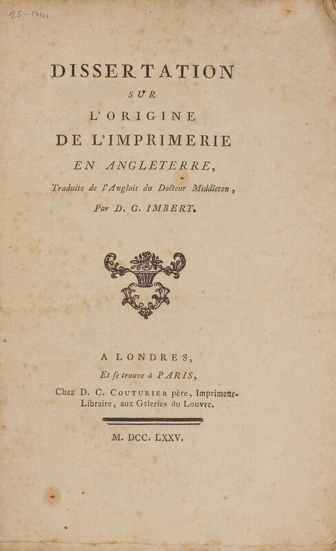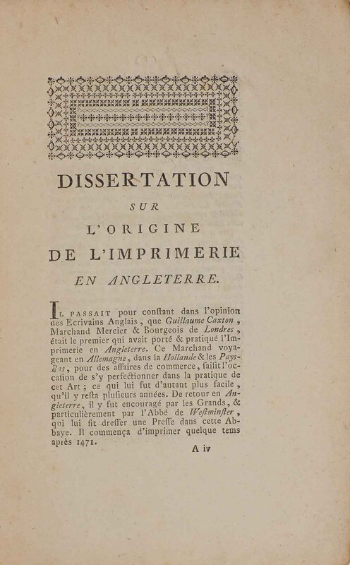 Dissertation sur l’origine de l'imprimerie en Angleterre,