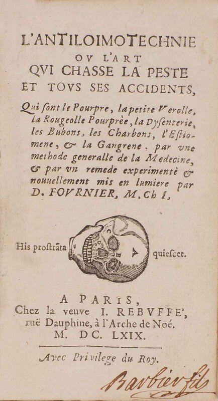 ![Another image of L’Antiloimotechnie; ou, L’Art qui chasse la peste et tous ses accidents, qui sont le pourpre, la petit verolle, la rougeolle pourprée, la dysenterie, les bubons... par une methode generalle de la medecine, & par un remede experimenté... by FOURNIER, [Denis].](https://images.vialibri.net/production/26/9049a---height_100.jpg?v=1761820775)