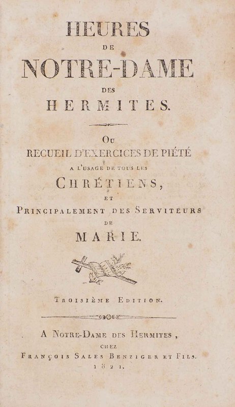 Heures de Notre-Dame des Hermites. Ou Recueil d’ exercises de piété a l’usage des tous les chrétiens, et principalement des serviteur de Marie. Troisième édition.